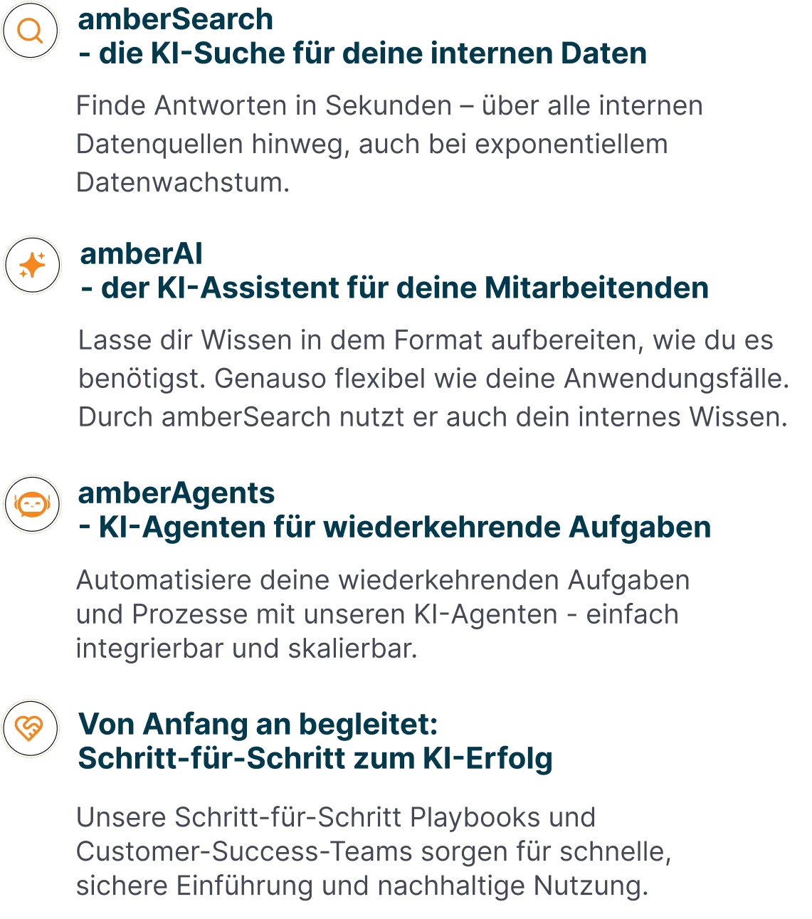 Starte noch heute und erlebe, wie amber dein Unternehmenswissen sofort verfügbar macht – sicher und DSGVO-konform.